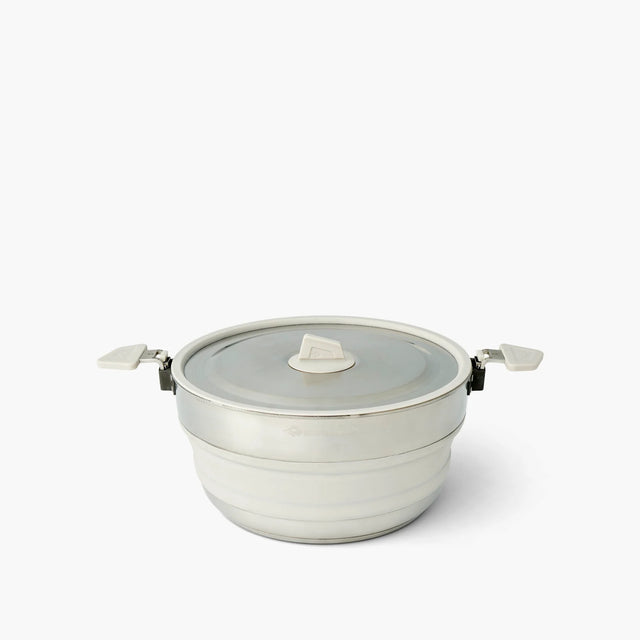 Induction-compatible, collapsible stainless steel pots with a three-layer base for even heat transfer form the heart of a great camp kitchen. Dual Click-Safe handles allow you to securely hold, carry and pour from the pots. The handles can be reversed to secure the lid (and any nesting tableware) during transport. A detour means sometimes taking the longer way on your journey; Detour cookware means you're the kind of person who doesn't cut corners.